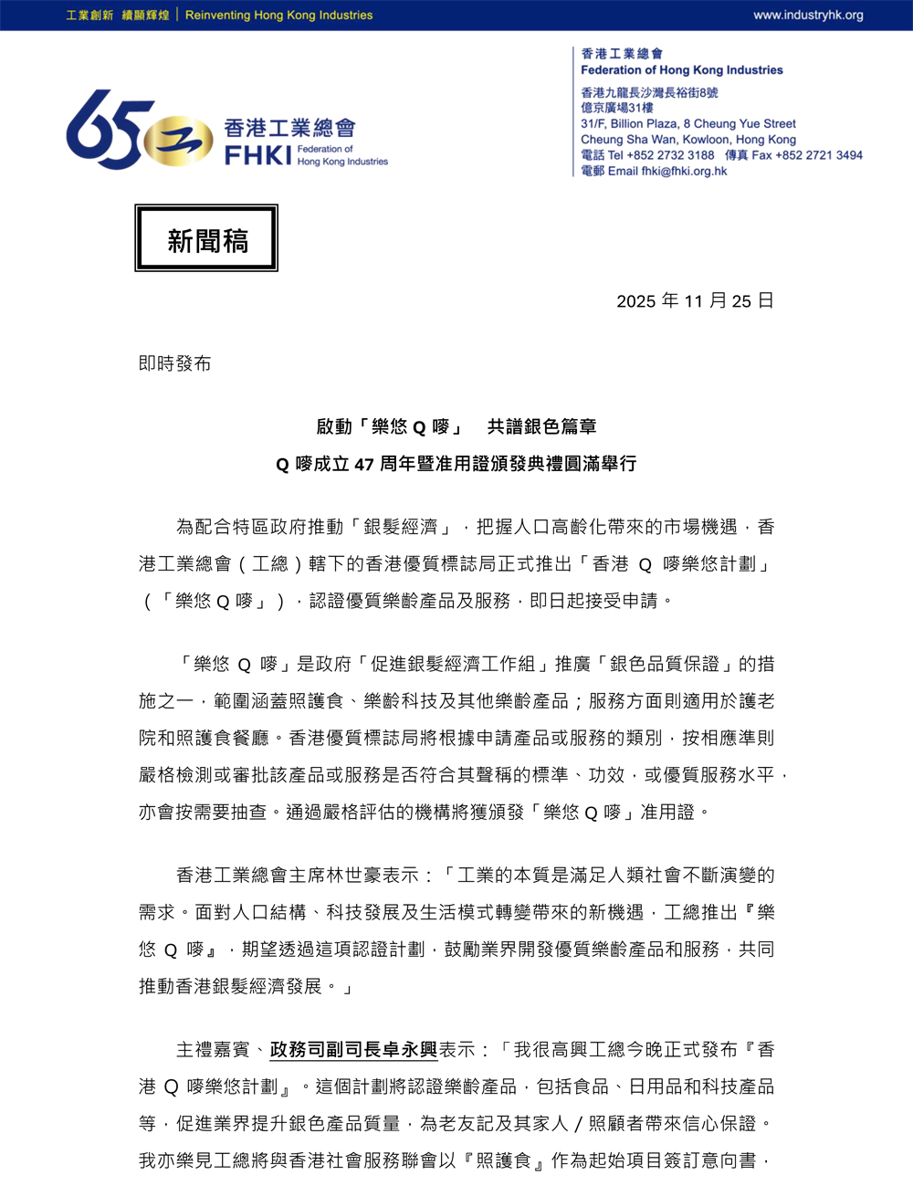 啟動「樂悠Q嘜」 共譜銀色篇章 Q嘜成立47周年暨准用證頒發典禮圓滿舉行